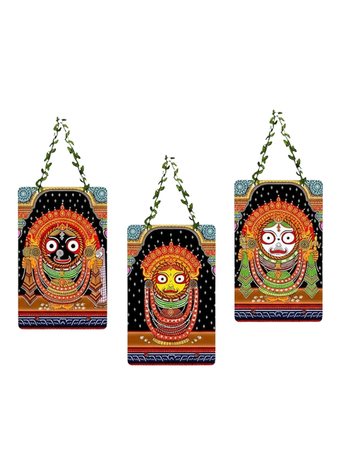 Divine Trinity Wall Hanging Set | Jagannath, Balabhadra & Subhadra (Set of 3)